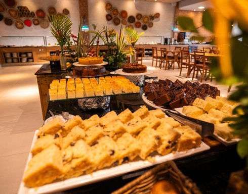 A experiência gastronômica do ONDAS orla RESORT funciona com o formato Tudo Incluído com foco na variedade e no paladar. O restaurante principal Porto Seguro disponibiliza buffets fartos para todas as refeições, enquanto os bares Mutá e Cabrália servem drinks, petiscos e pizzas, garantindo que o hóspede tenha opções deliciosas a qualquer hora.